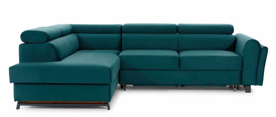 Le canapé-lit d'angle Nikos, ce dernier se dépliant facilement grâce au système d'extraction intuitif, offre un couchage de 125x192 cm. Il est parfait pour une bonne nuit de sommeil grâce aux matériaux de haute qualité. Le canapé dispose d'un rangement pour le linge de lit. Il économise de l'espace ailleurs dans la maison et aide à garder le salon dégagé.