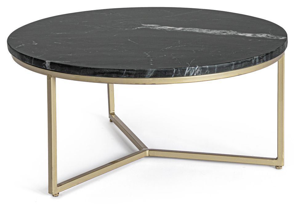 Table basse en marbre noir et pieds acier doré Pery D 67.5 cm