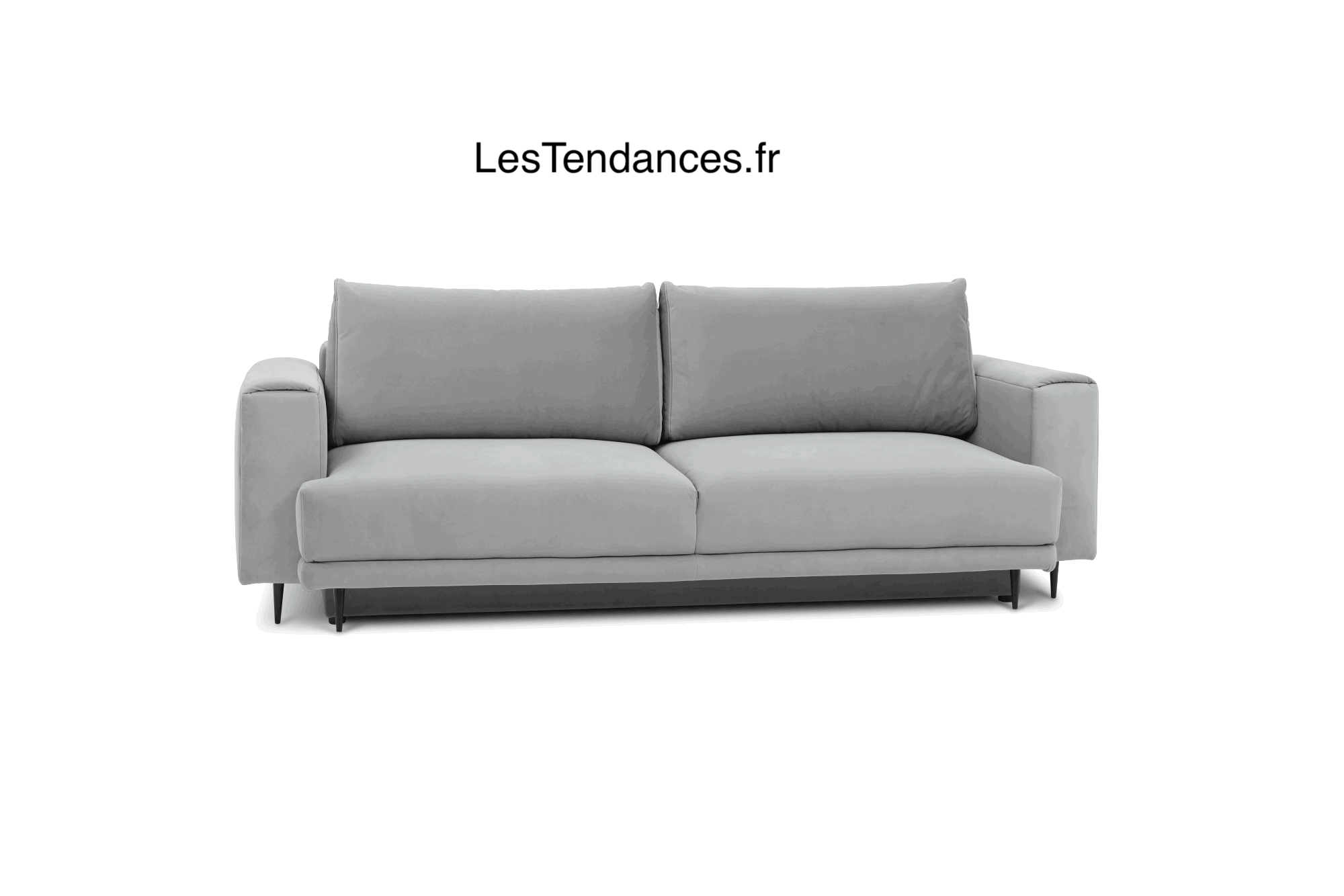 • Canapé droit convertible coffre velours DAVINA - Pieds métal noir - Photo n°1