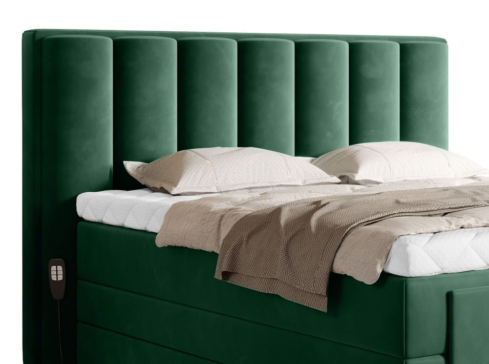 Lit boxspring tissu vert haut de gamme sommiers relaxation électrique Arkos