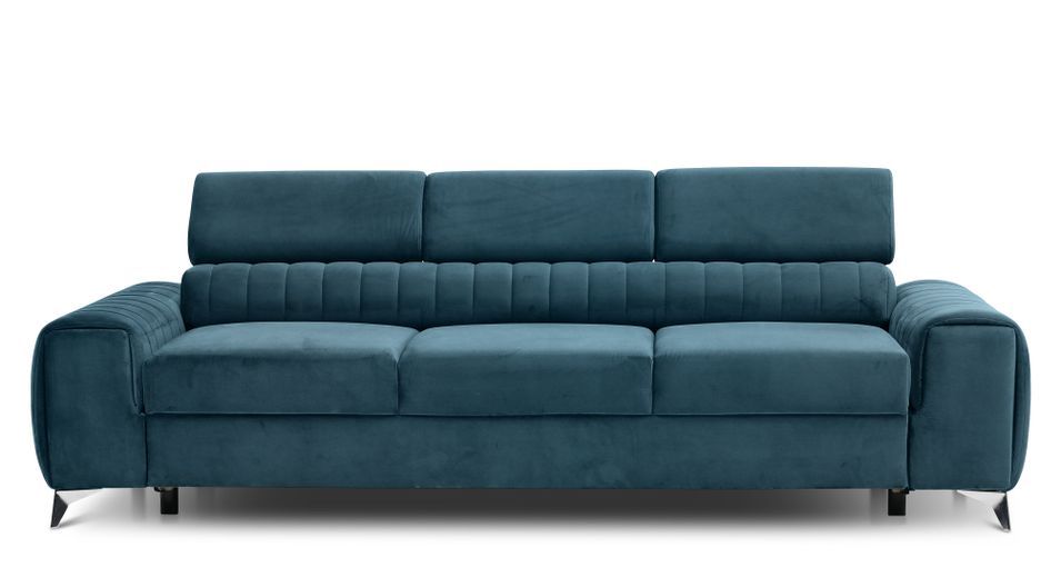 Canapé convertible velours LOZA - Appuis-tête réglables et pieds acier chromé