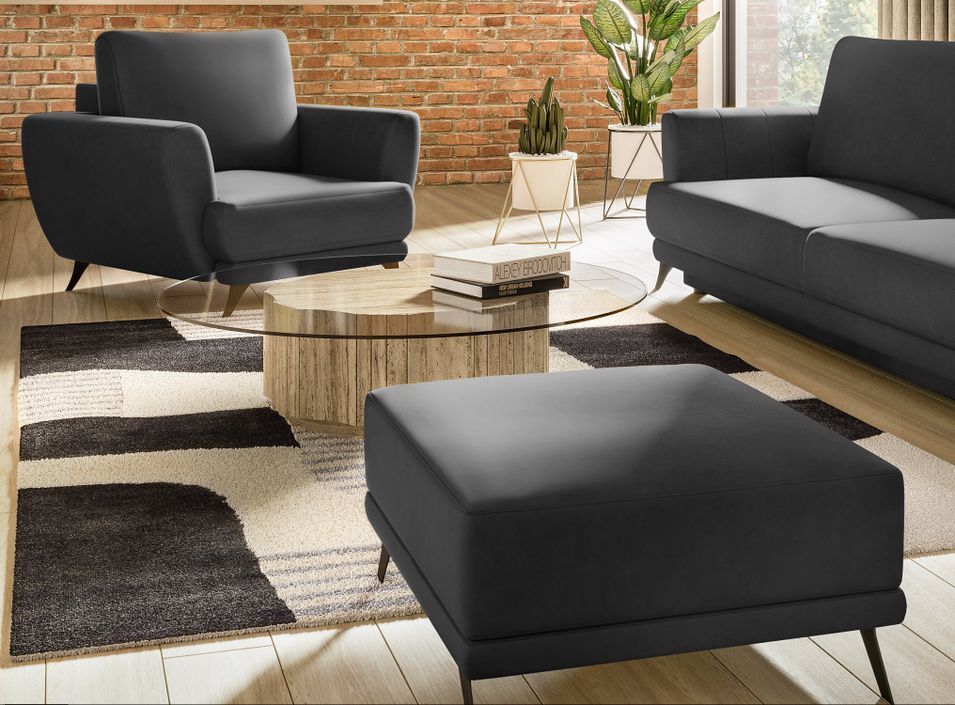 Charmant et très confortable, cet ensemble de canapés 3 pièces de la collection Zora présenté avec un revêtement italien en simili cuir noir de fabrication haut de gamme reconnue pour la qualité de leur travail et respect des belles matières.