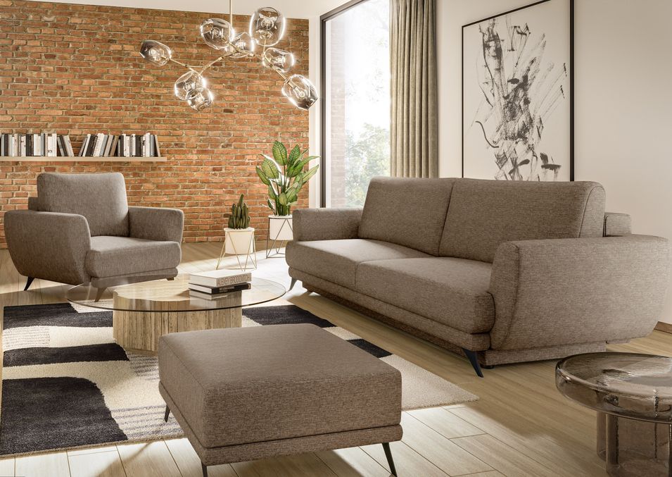Ensemble canapé convertible tissu beige chiné Zora - 1 canapé 3 places + 1 fauteuil + 1 pouf