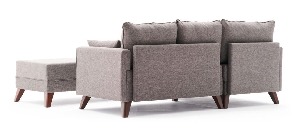 Petit canapé convertible d'angle gauche avec pouf tissu marron clair Kandy 205 cm