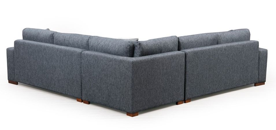 Canapé d'angle tissu anthracite avec étagère en bois sur la droite Kaloé 323 cm