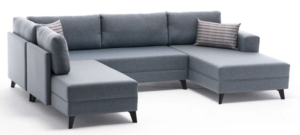 Canapé panoramique tissu bleu clair méridiennes modulables Kinju 305 cm