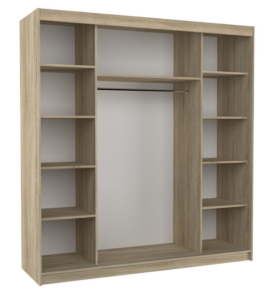 Armoire chambre adulte naturel et blanc 2 portes coulissantes Yvona 200 cm