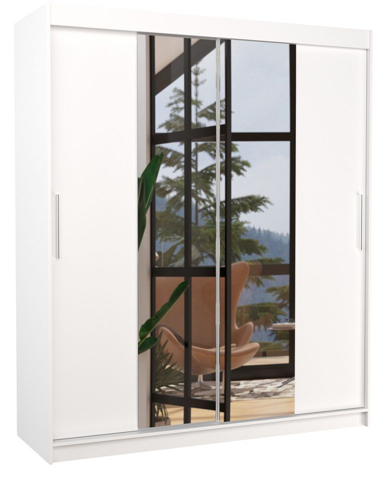 Découvrez notre armoire de chambre à coucher classique blanche Dally avec ses deux portes coulissantes blanc et miroir. Mesurant 180 cm de largeur sur 200 cm de hauteur avec une profondeur de 58 cm, cette armoire est idéale pour maximiser votre espace de rangement tout en ajoutant une touche de style classique chic à votre chambre.