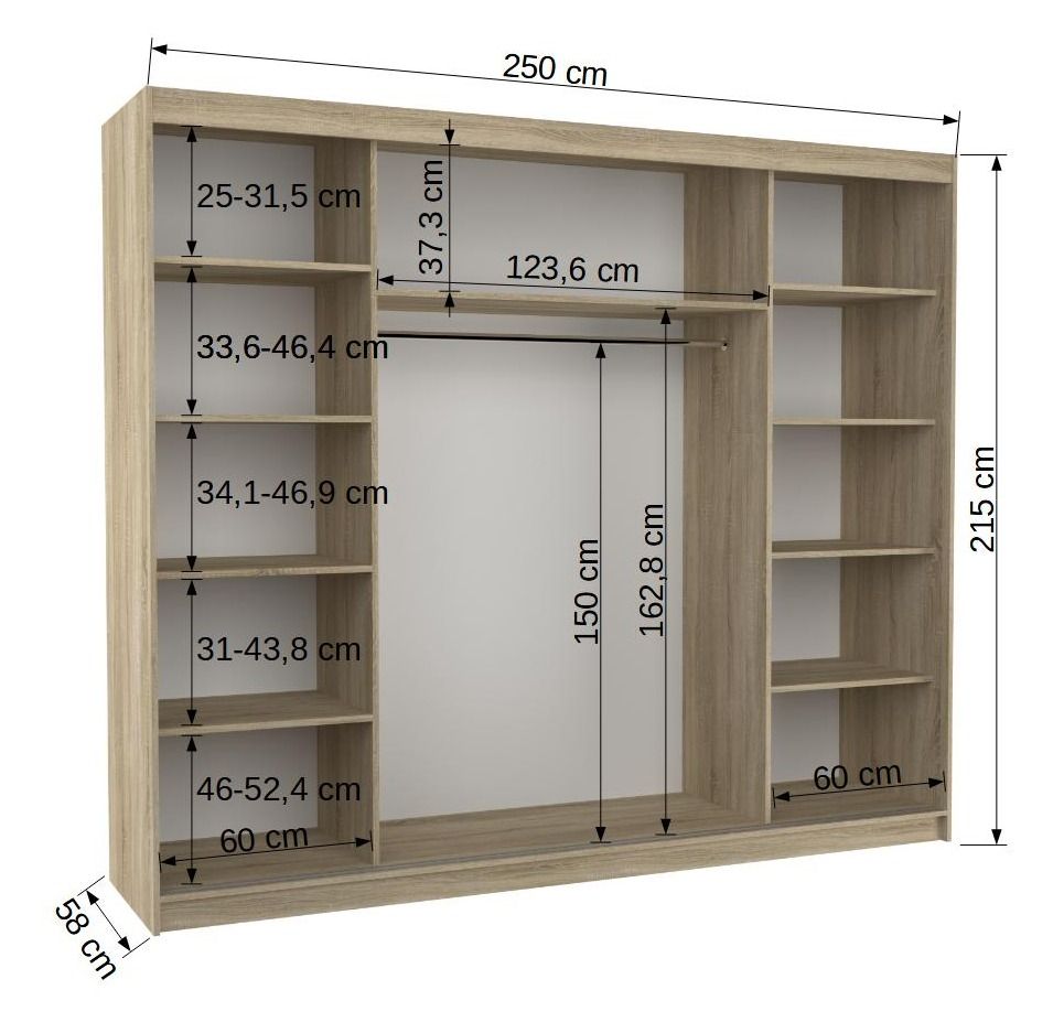Grande armoire de chambre à coucher 3 portes coulissantes marron et miroir biseauté Kola 250 cm