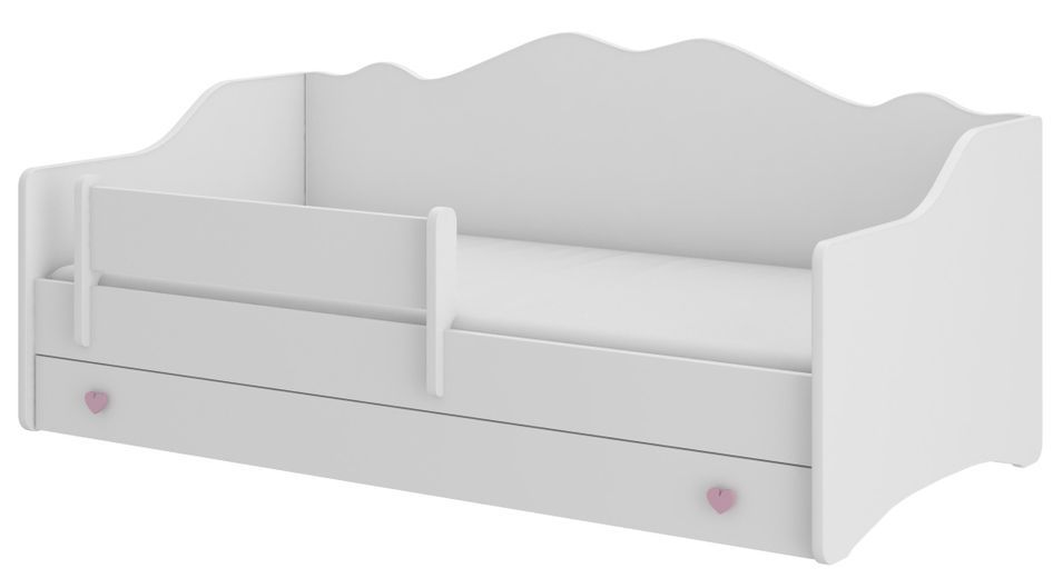 Lit enfant avec tiroirs de rangement bois blanc 80x160 cm petit coeur rose Belly