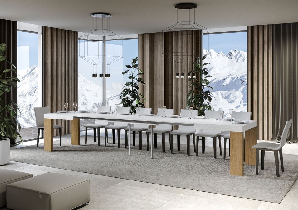 Table rectangulaire extensible blanche et bois naturel 160 à 420 cm Ribo