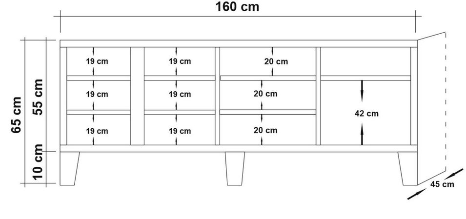 Dimensions totales : L 160 x H 65 x P 45 cm