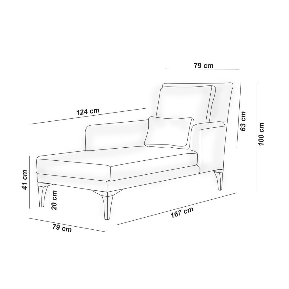 Dimensions Spacieuses : Avec des dimensions de L 79 x P 167 x H 100 cm, notre méridienne offre amplement d'espace pour vous étendre et vous détendre. La hauteur d'assise de 41 cm est idéale pour un confort d'assise optimal.