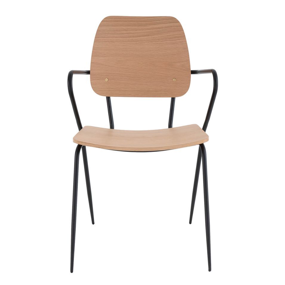 Le contraste entre le bois de chêne et le métal noir ajoute de la profondeur au design de la chaise, en créant un mélange de textures et de couleurs.