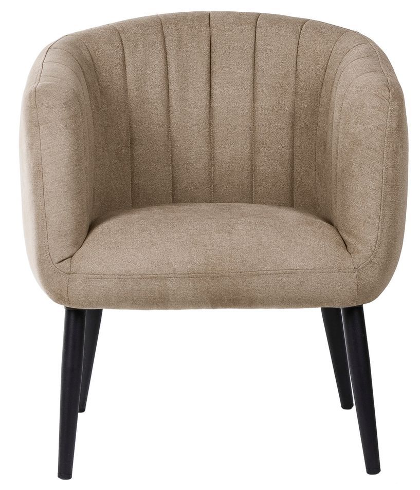 Fauteuil confortable tissu marron clair et pieds métal noir Vina 68 cm