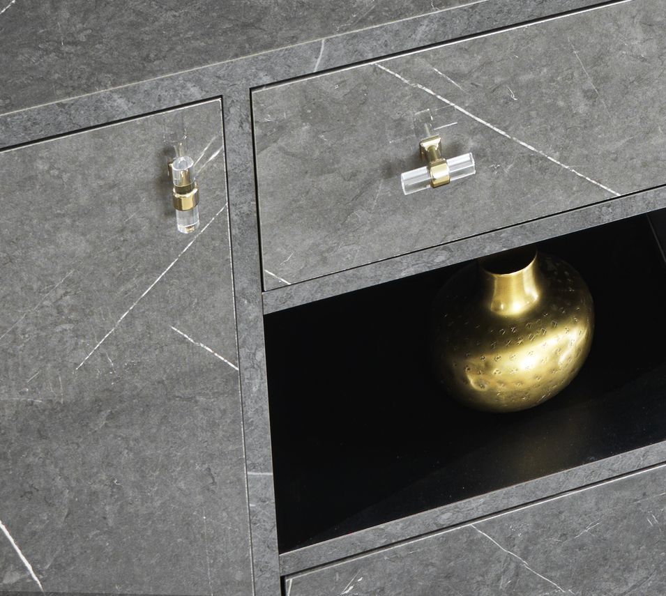 Buffet 4 portes 1 tiroir bois gris effet marbre vernis Botela 190 cm