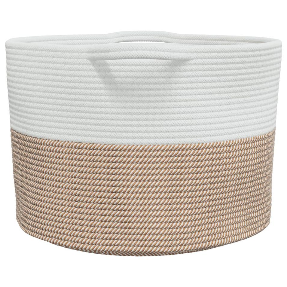 Panier à linge marron et blanc Ø55x36 cm coton