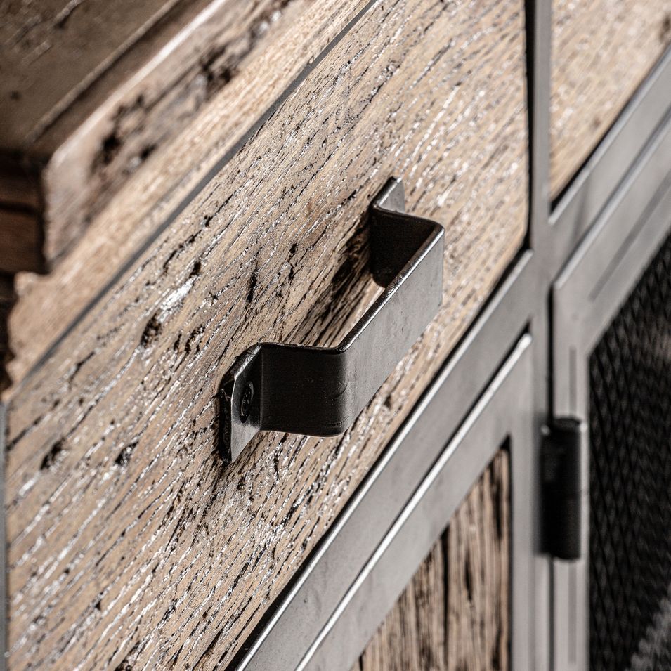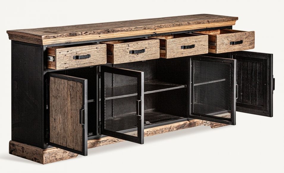 Buffet bois massif recyclé et acier noir 4 tiroirs 4 portes Wader 200 cm