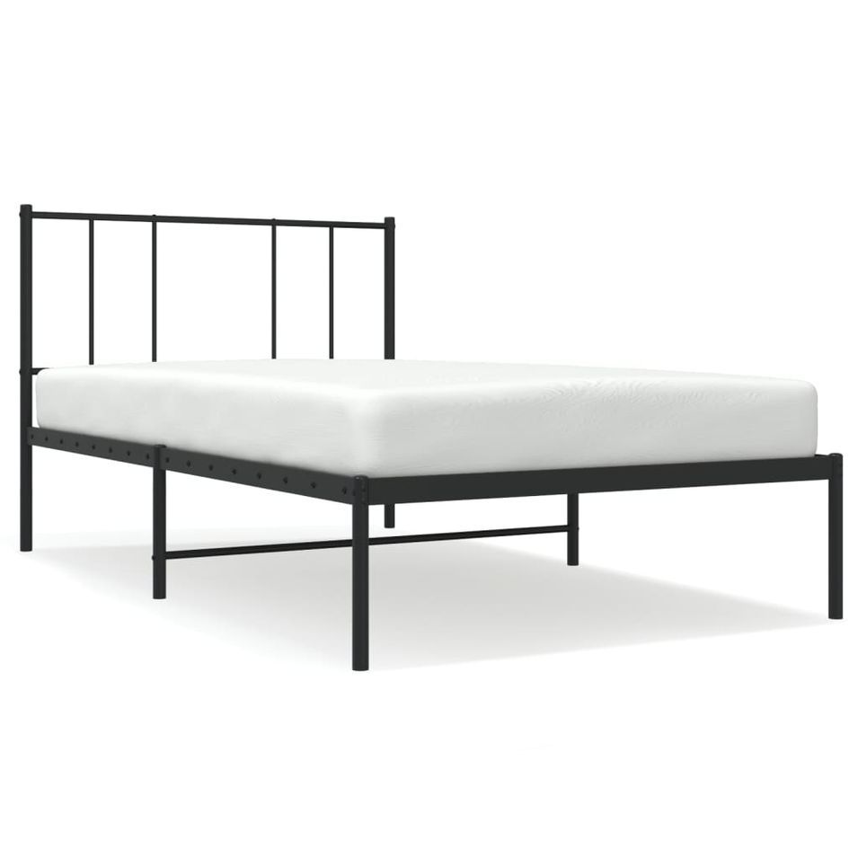 Cadre de lit métal avec tête de lit noir 90x190 cm