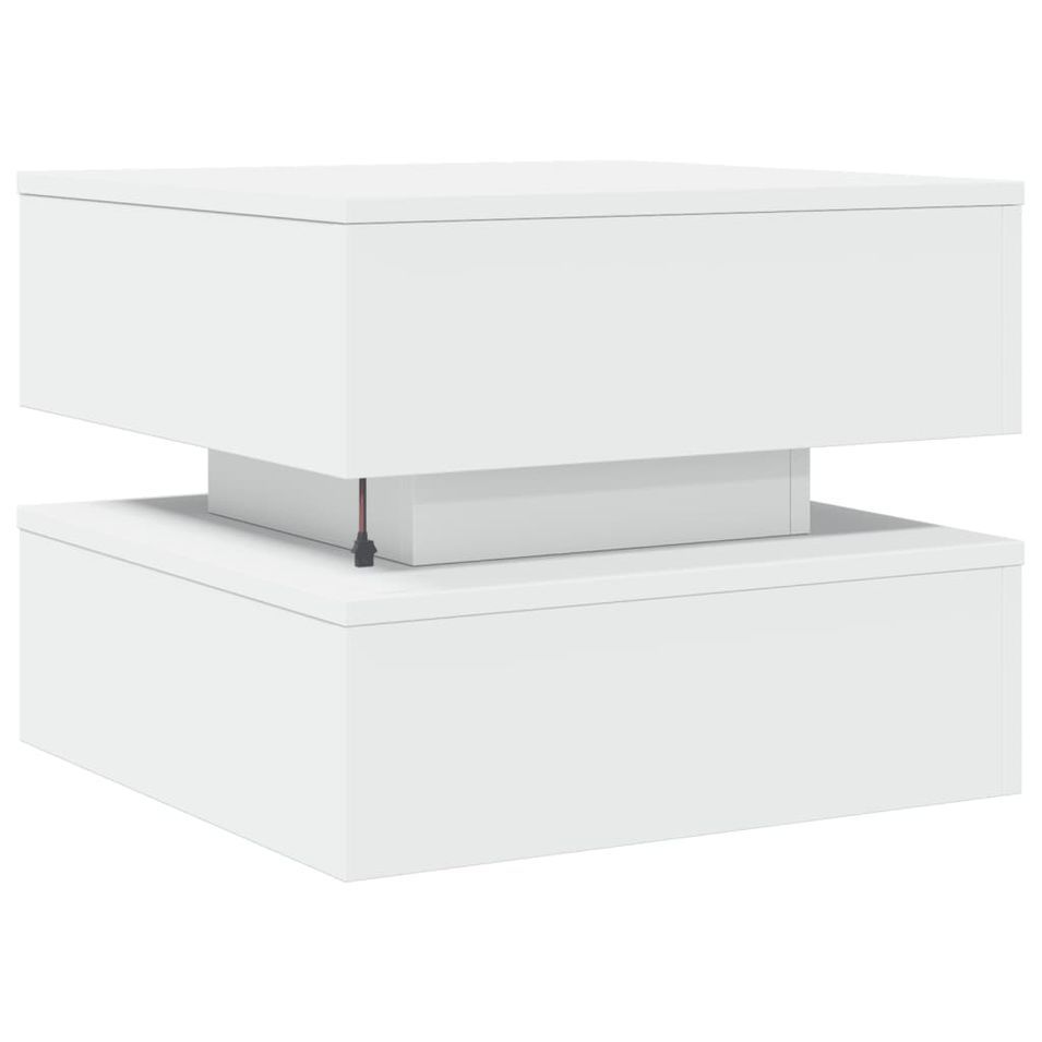 Décorez votre salon avec cette table basse moderne avec lumières LED, elle se marie facilement avec les meubles de tout style de votre maison. Matériau durable : le bois d'ingénierie est d'une qualité exceptionnelle avec une surface lisse et présente également résistance, stabilité et résistance à l'humidité.Dessus de table robuste : le dessus de table robuste de cette table d'appoint offre une surface sécuritaire sur laquelle vous pouvez placer des boissons, des vases, des bols de fruits ou des ornements.Lumières LED RVB : la table du canapé est équipée de lumières LED RVB vibrantes. Avec divers menus personnalisables, vous pouvez changer sans effort la couleur des lumières et même les régler automatiquement. Ces lumières LED renforcent non seulement l'aspect contemporain de de la table centrale, mais aussi son attrait pour la mode.Design polyvalent : cette table de canapé peut répondre à différents besoins car elle peut être utilisée comme table d'appoint, table à thé ou table de téléphone. Bon à savoir :Ce produit est doté d'un connecteur USB qui nécessite une source d'alimentation USB de 5V certifiée (non incluse).