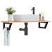 L'étagère murale pour vasque se fixe solidement au mur, offrant une solution élégante et peu encombrante pour votre salle de bains. Robuste et durable : cette étagère de lavabo est associée à une structure en acier et à un plateau en bois de chêne massif, ce qui la rend robuste, stable et durable.Gain de place : l’étagère "flottante" du lavabo offre suffisamment d’espace pour ranger les crèmes et les petits articles. Grâce à la forme de trapèze, vous pouvez accrocher des serviettes ou d’autres choses sur le support pour gagner de la place.Facile à utiliser : le plan de travail n'est pas percé, ce qui permet d'installer la vasque à gauche, à droite ou au centre, selon les besoins de la pièce. Grâce aux trous pré-percés dans le support, il peut être facilement assemblé avec le plateau de table et fixé au mur.Multifonctionnel : grâce à son design moderne, il offre un espace supplémentaire pour différents types de salles de bains. Bon à savoir :Les vis ne sont pas incluses, vous pouvez les acheter séparément en fonction des informations fournies ci-dessous.Fixation murale : vis d'expansion M8 de 2 pcs par supportDessus en bois : vis M5x18 (T=2) de 2 pcs ou vis M5x20 (T=2,5/4cm) de 2 pcs par support.En tant que produit naturel, le bois peut présenter des nœuds et des imperfections que nous remplissons avec des garnitures noires pour garantir un aspect lisse.