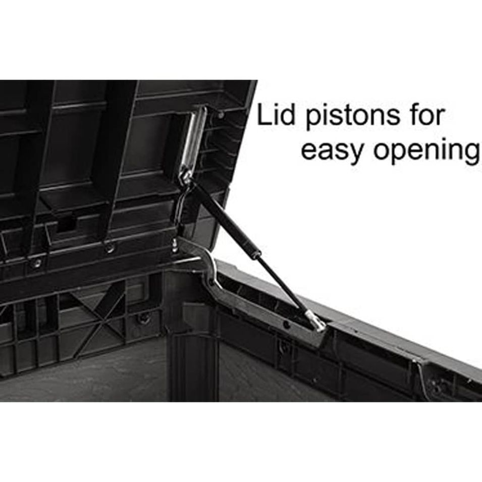 Cette boîte de rangement d'extérieur de 757 L Cortina de la marque Keter vous permet de garder votre espace extérieur propre et sans encombrement. Vous pouvez l'utiliser pour cacher tous vos accessoires de jardin, y compris les coussins, etc. Matériau résistant aux intempéries : la boîte de rangement rustique à effet bois est fabriquée dans le tout dernier matériau Evotech protégé contre les UV, un matériau composite avancé de la marque Keter. Elle offre un aspect et un toucher bois naturel, sans entretien et avec une durabilité incroyable.Garde le contenu au sec et ventilé : ce coffre de rangement pour terrasse est conçu pour résister au soleil et à la pluie et garde tout le contenu, des coussins à l'équipement de barbecue, au sec et ventilé tout au long de l'année.Peut être verrouillé pour plus de sécurité : les pistons du couvercle facilitent l'ouverture de la boîte, tandis que le couvercle verrouillable protège vos affaires. (Remarque : la serrure n'est pas incluse).Capacité de 757 litres : des premiers rayons du soleil au printemps jusqu'à la chute des feuilles en automne, vos affaires sont bien rangées dans ce conteneur de rangement extérieur.Durable : la gamme de produits de la marque Keter est conçue pour être 100 % recyclable. Ils durent donc toute une vie tout en restant fonctionnels et abordables ! Keter souhaite ainsi contribuer à un monde dans lequel un environnement respectueux de l'environnement est possible sans effort dans notre vie quotidienne.