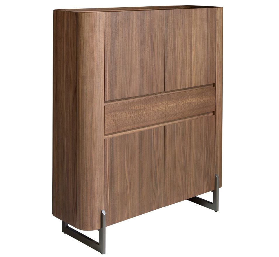 Buffet haut 4 portes Bokane 115 cm - Noyer et acier chromé