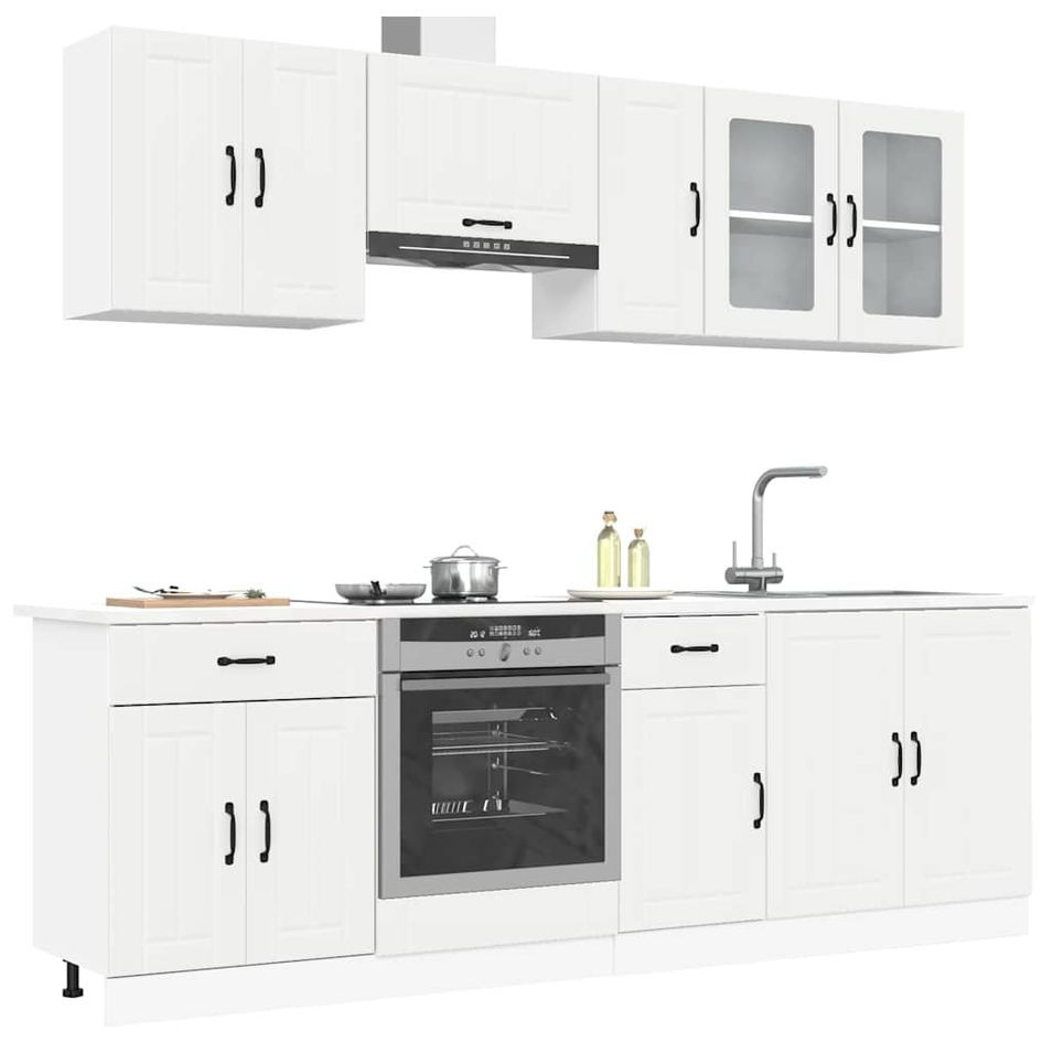 Ensemble d'armoires cuisine 8pcs Kalmar blanc bois d'ingénierie