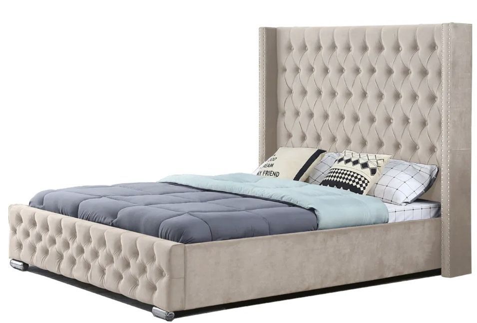 Tête de lit aillée : Les côtés ornés de capitonnage brillant ajoutent une touche unique.