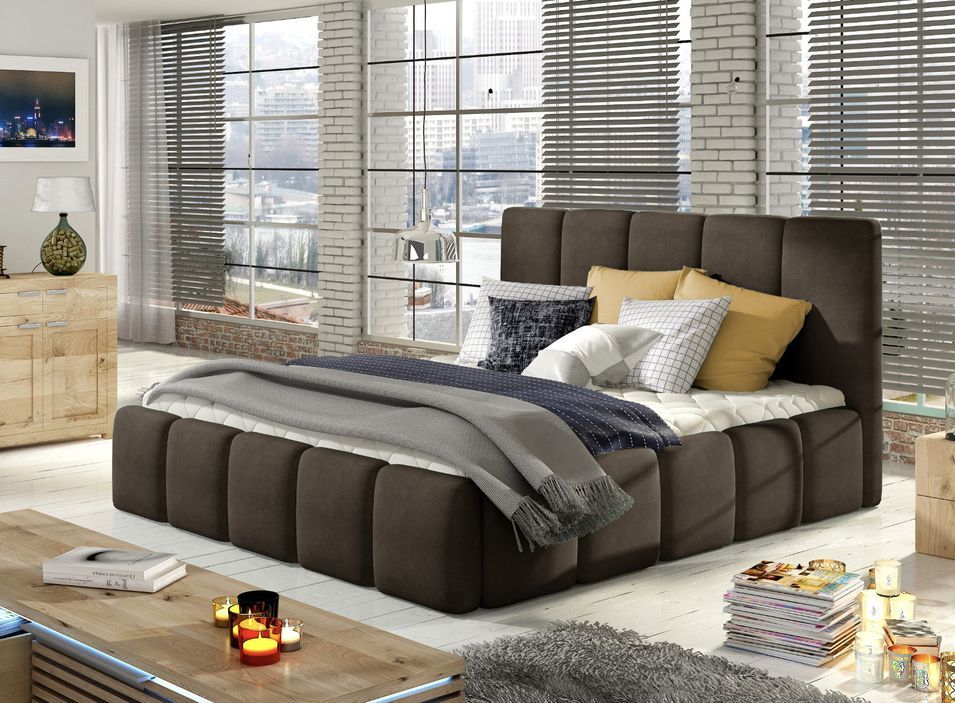 Lit adulte avec coffre de rangement Vika – Velours capitonné