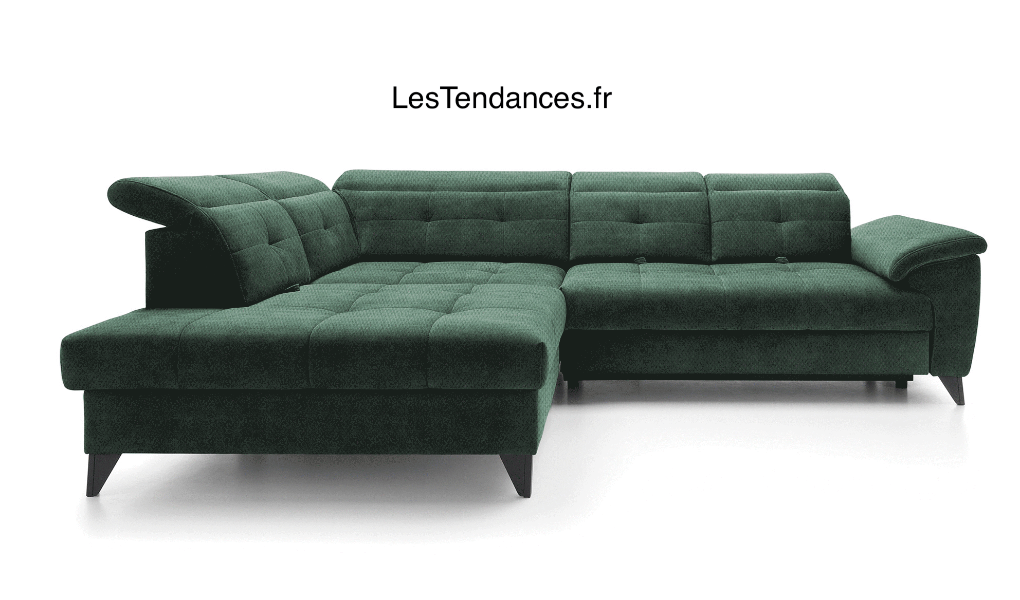 Canapé d'angle convertible tissu velouté KARIN - Coffre et appuis-tête réglables