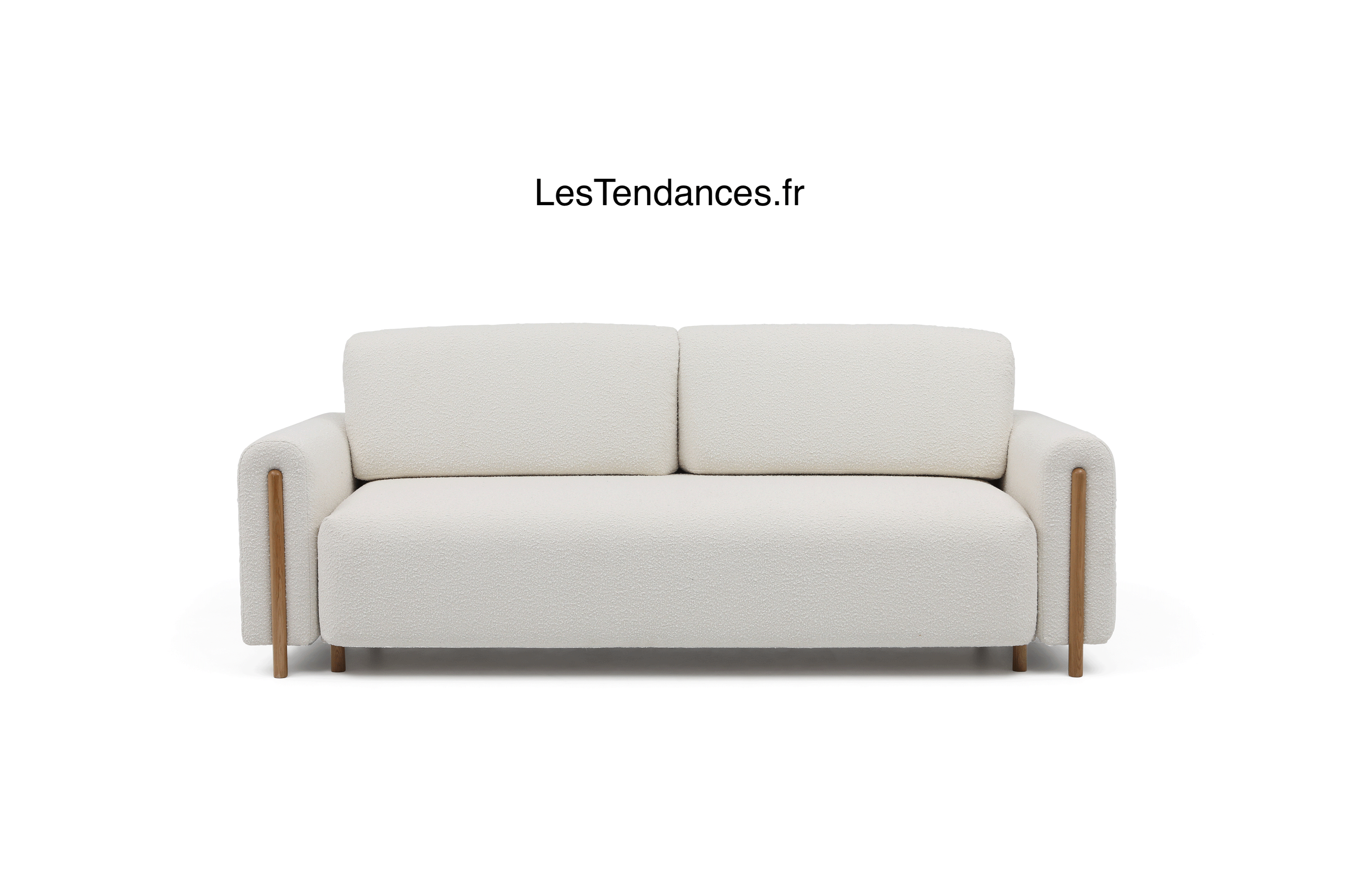 Canapé convertible en tissu bouclette DOVA - Pieds bois massif naturel