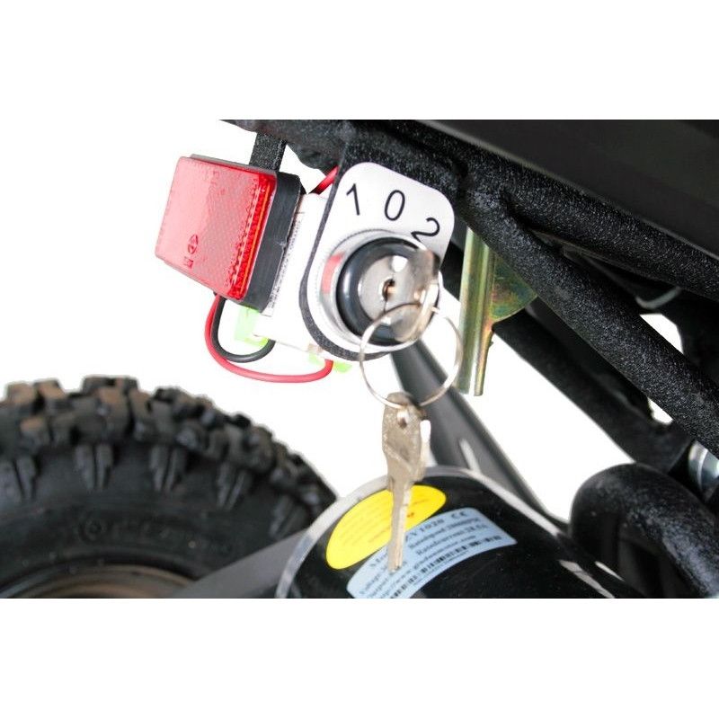 Le quad électrique Python version sport batterie 1000W noir et bleu est équipé d'un système de réglage de vitesse (6, 15 ou 30 Km/h) depuis un barrier à 3 positions: