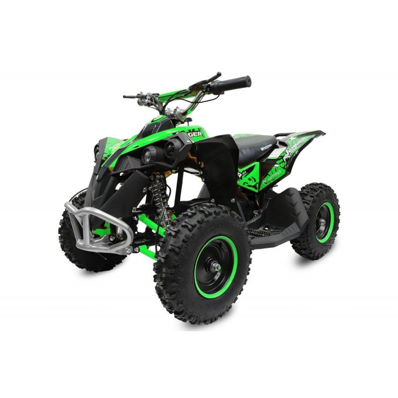 Quad cross vert pour enfant à partir de 4 ans collection compétition électrique 1000W , très facile d'approche. Pour commencer en toute sécurité sur moteur 1000W avec 3 niveaux de bridage rgéables par clé. Stable sur terrain accidenté grâce à ses roues 6 pouces.
