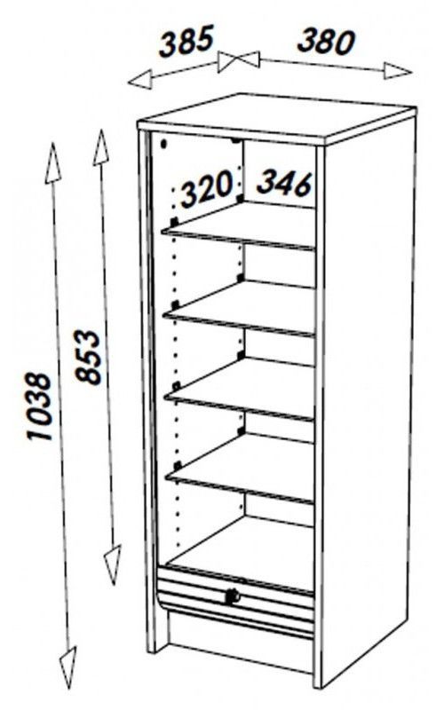 - Meuble: L 38 x H 104 x P 38.5 cm