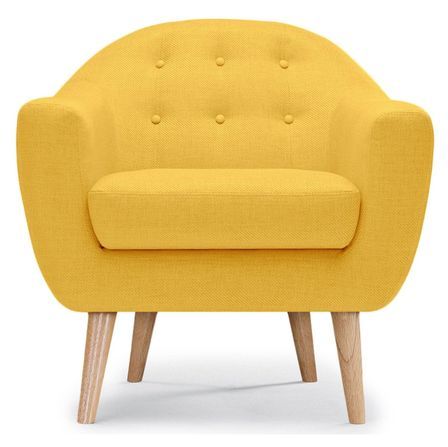 Ce magnifique fauteuil de la collection Vernier est très confortable. Il s'intégrera facilement dans votre décoration. Sa structure en tissu jaune montée sur 4 pieds oblique en bois naturel assure son côté nordique. Élégant et raffiner, il est parfait pour votre intérieur.